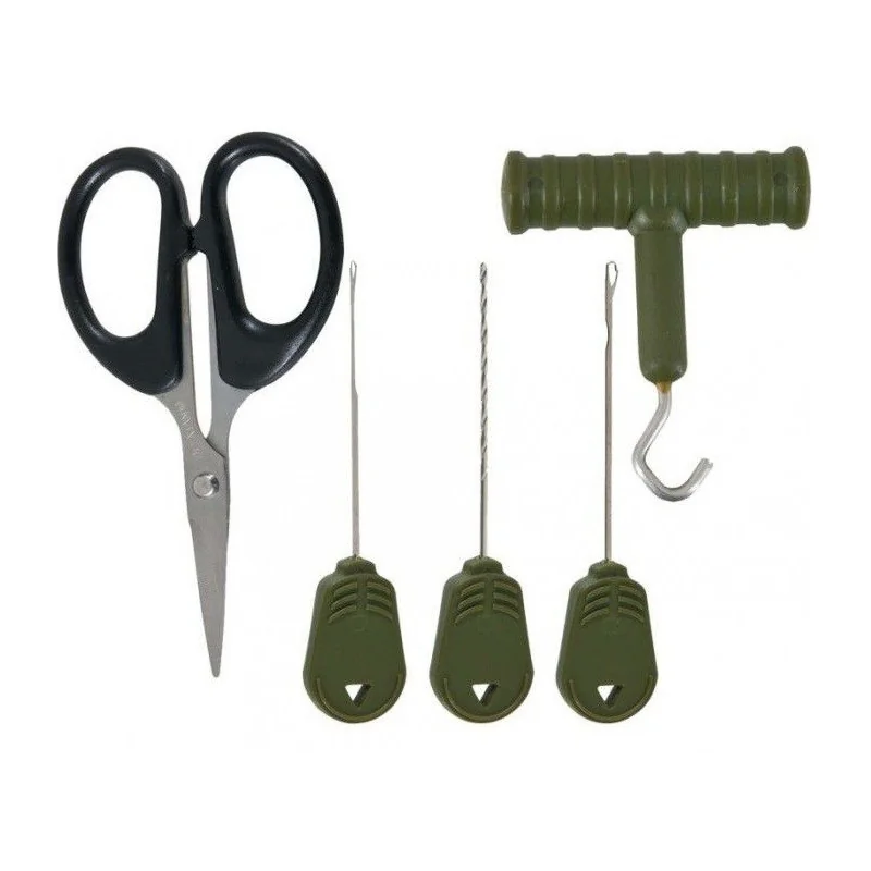 Zestaw niezbędnych narzędzi karpiowych do zakładania kulek proteinowych.