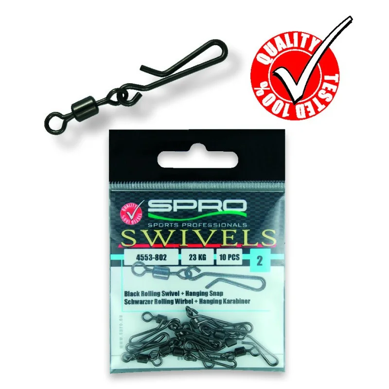 Krętlik baryłkowy z agrafką do szybkiego montażu przynęt spinningowych, np. za pomocą kółeczka łącznikowego.