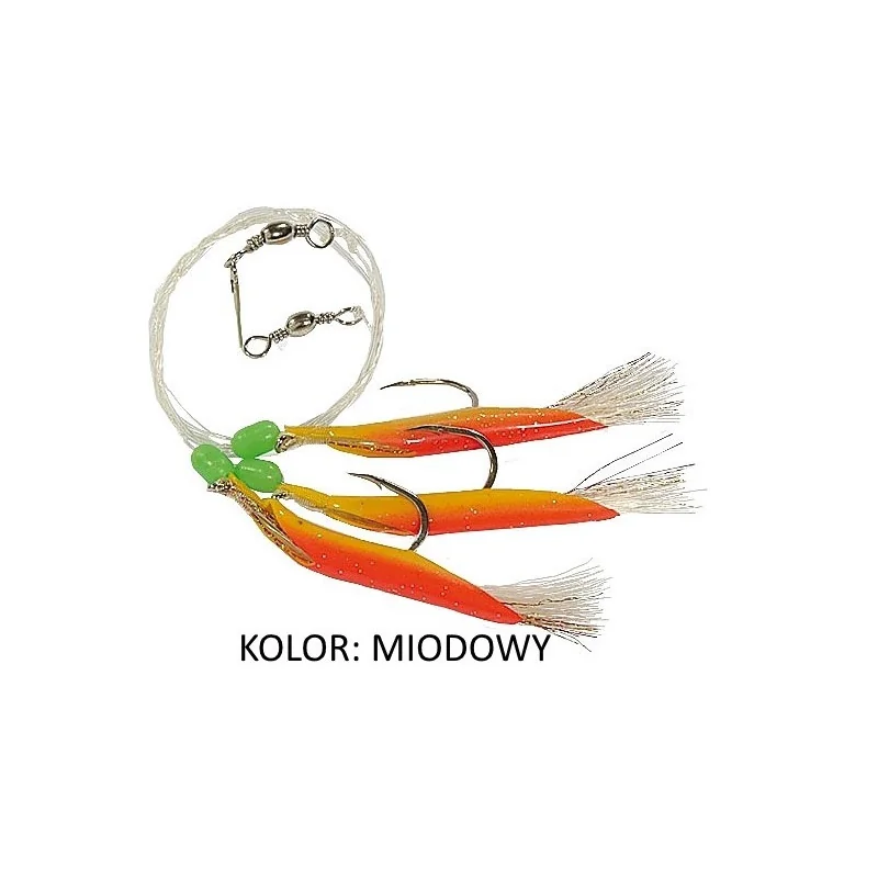 Przywieszka dorszowa wyposażona w 3 duże haki w rozmiarze 5/0. Polecana na największe wątłusze występujące w norweskich fiordach. Żyłka główna 0,60mm, przypon 0,55mm.