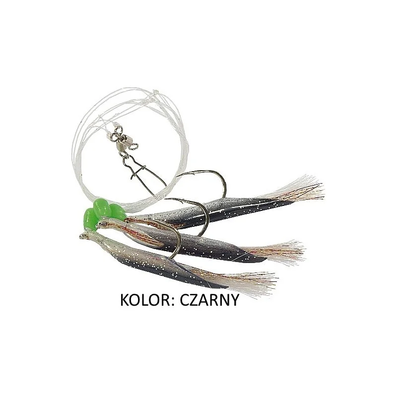 Przywieszka dorszowa wyposażona w 3 duże haki w rozmiarze 5/0. Polecana na największe wątłusze występujące w norweskich fiordach. Żyłka główna 0,60mm, przypon 0,55mm.
