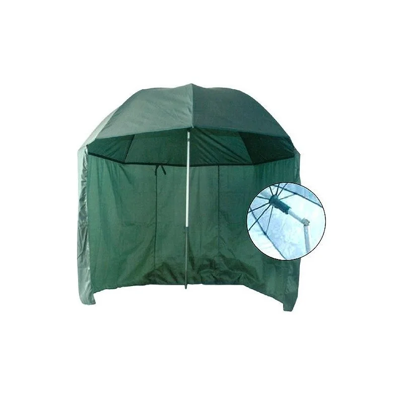 Parasole są wykonane z wysokiej jakości materiałów, wyposażone w łamaną, regulowaną czaszę i sztycę zakończona gwintem. Dzięki temu parasol można stabilnie zamocować na większości brzegów. W komplecie znajduje się także metalowy pręt ułatwiający wkręcanie sztycy,opcjonalnie w niektórych modelach występuje załączona osłona chroniąca przed wiatrem i deszczem przyczepiana do parasola za pomocą zamka błyskawicznego i rzepów, a do podłoża za pomocą szpilek. W komplecie są także dwie linki, którymi można przywiązać parasol do ziemi w czasie silnego wiatru. Pod takim półnamiotem można komfortowo spędzić czas nad wodą nawet w bardzo niekorzystnych warunkach atmosferycznych.