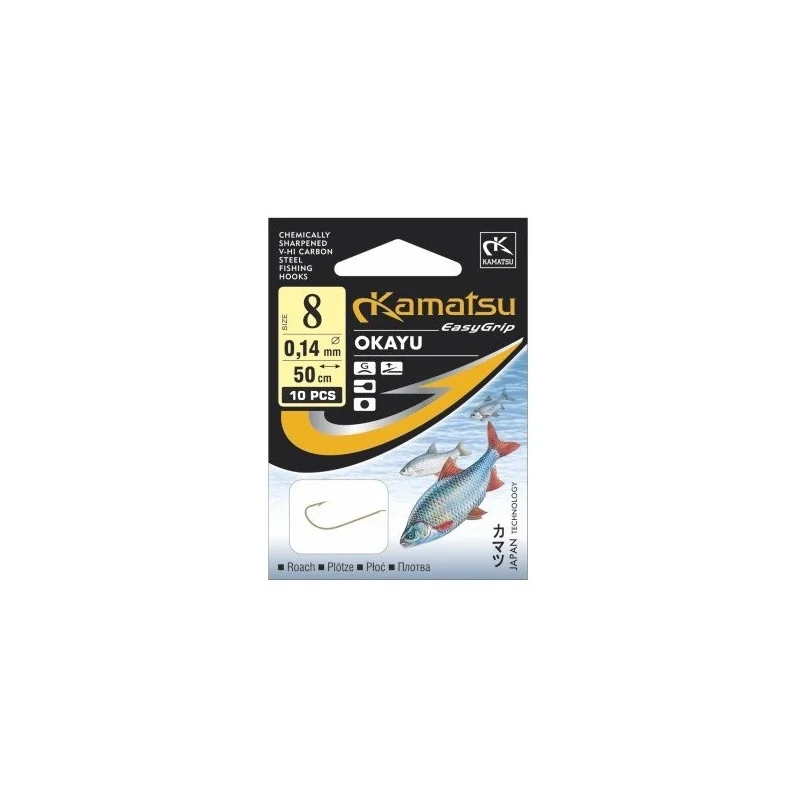 Przypony Kamatsu- dla wędkarzy początkujących, a także dla tych, którzy nie chcą tracić czasu na pracochłonne wiązanie przyponów. Długość żyłki wynosi 50 cm. Tak związane przypony nadają się zarówno do połowów w rzekach (długi przypon) jak i w akwenach ze stojącą wodą (krótki przypon). Przypony przygotowane są na żyłkach o średnicach 0,12, 0,14 i 0,16 mm w 4 rozmiarach.