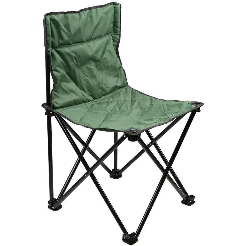 Poręczne składane krzesło wędkarskie z oparciem, uszyte z mocnego impregnowanego materiału.