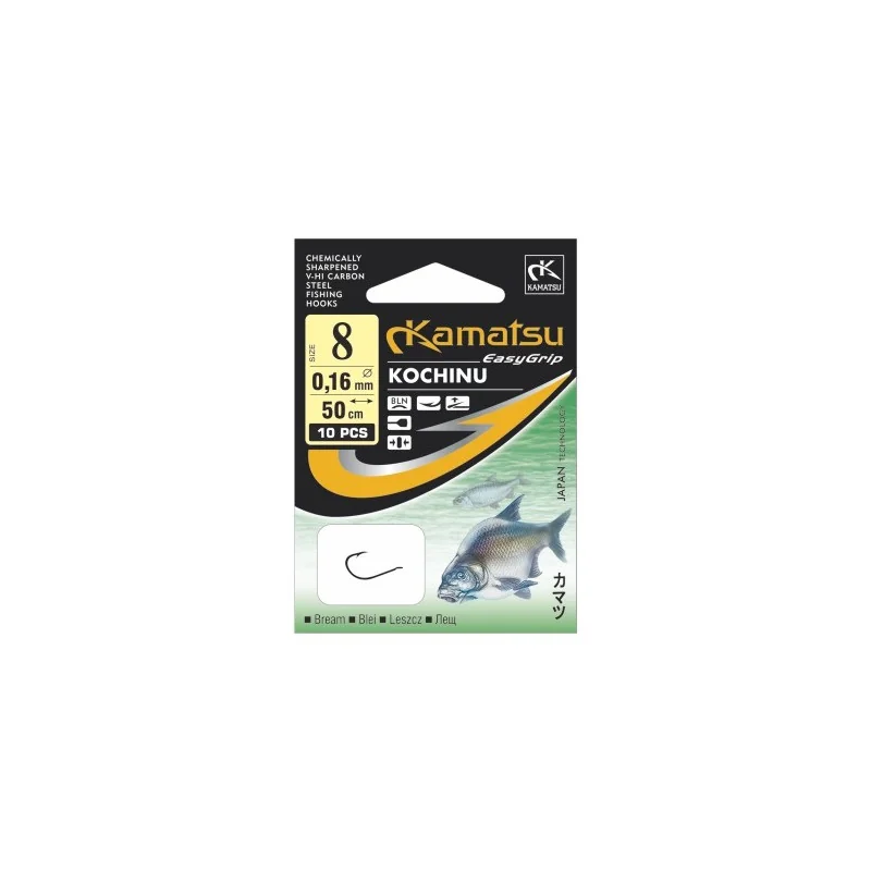 Kuty hak dostępny w kolorze czarny nikiel. Łączenie z przyponem przez łopatkę. Zaopatrzony jest w wygięty w prawo względem osi haka grot, który sam w sobie jest prosty.
