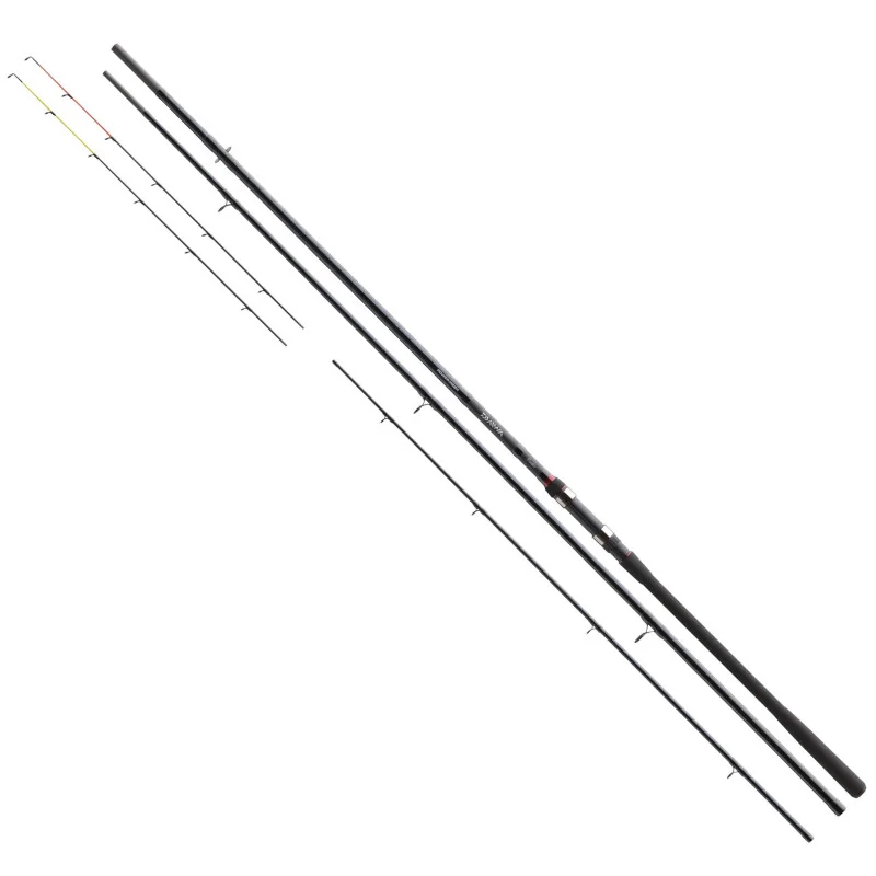 Feedery Powermesh to seria wysokiej klasy wędek DAIWA o wyśmienitej relacji ceny do jakości. Wszystkie posiadają dwie różne pełne szczytówki z włókna węglowego. Modele z wyrzutem 100 g oraz 120 g przeznaczone są do coraz popularniejszego połowu metodą w wodzie stojącej lub wolno płynącej. Lekkie i dobrze wyważone, zapewniają niezbędną rezerwę mocy w trakcie holu dużych ryb. Modele Heavy Feeder o ciężarze wyrzutu 150 g to klasyczne, uniwersalne feedery świetnie spisujące się zarówno podczas łowienia w silnym nurcie, jak i w wodach stojących. Mocne blanki o dużej mocy dają niezbędną pewność podczas holowania grubych brzan w nurcie. Duże przelotki drgających szczytówek umożliwiają stosowanie przyponów strzałowych.