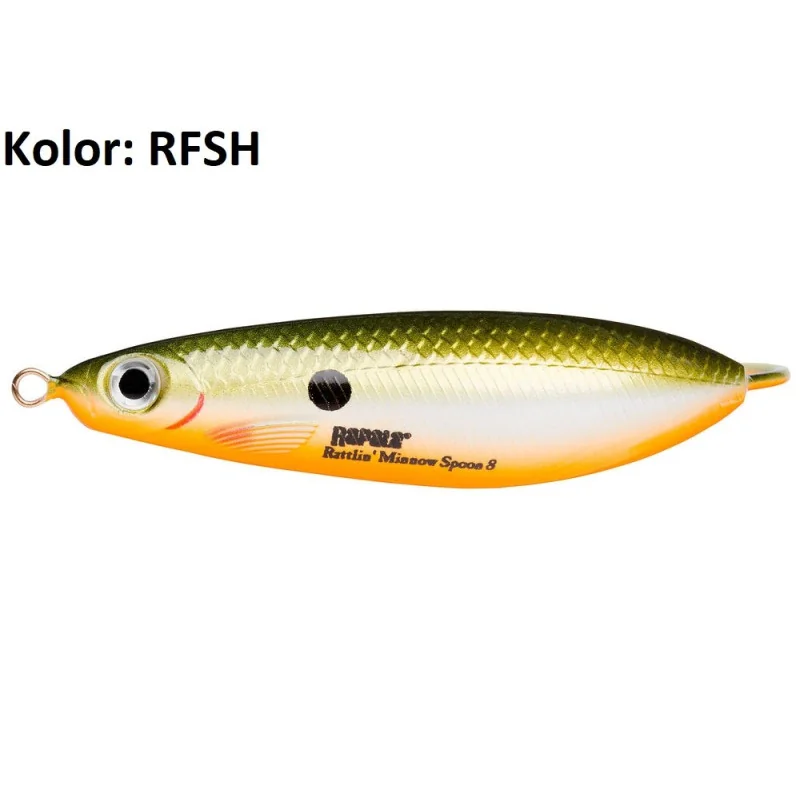 Rattlin' Minnow Spoon to unikalne połączenie kształtu woblera i akcji błystki. Szeroka, nieregularna akcja generuje wabiące odblaski. Wewnętrzna komora grzechocząca emituje wibracje i dźwięk. Przynętę wyposażono w wytrzymały hak VMC. Przy opadaniu będzie „zarzucać” ogonkiem i kolebać się na boki.