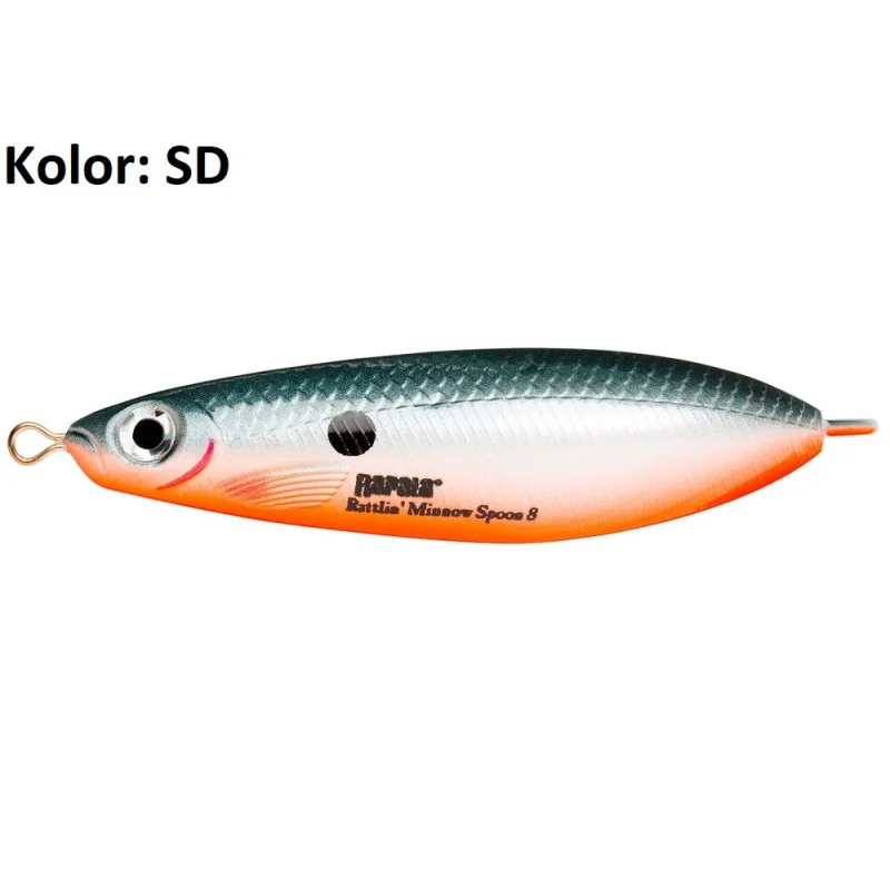 Rattlin' Minnow Spoon to unikalne połączenie kształtu woblera i akcji błystki. Szeroka, nieregularna akcja generuje wabiące odblaski. Wewnętrzna komora grzechocząca emituje wibracje i dźwięk. Przynętę wyposażono w wytrzymały hak VMC. Przy opadaniu będzie „zarzucać” ogonkiem i kolebać się na boki.