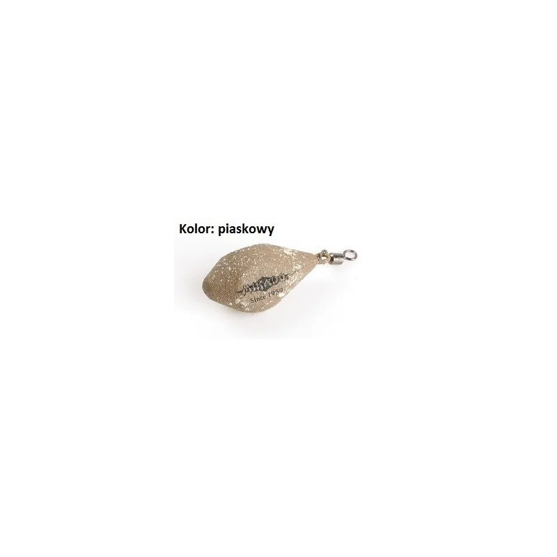 Ciężarek z krętlikiem, używany do budowy zestawów karpiowych. Montowany do rurki antysplątaniowej lub bezpiecznego klipsa, doskonale maskuje się na dnie. Kolor: piaskowy