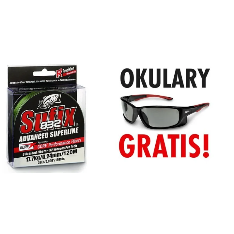 Plecionka Sufix 832 jest spleciona z siedmiu włókien Dyneema® oraz jednego włók na GORE® Performace Fiber. Włókno GORE® Performace Fiber czyni plecionkę znacznie gładszą, bardziej śliską i odporną na ścieranie. Co ważne, ta gładkość i śliskość utrzymuje się podczas długiego okresu użytkowania Sufixa 832 – plecionka nie strzępi się i zachowuje wytrzymałość, Sufix 832 jest w porównaniu z innymi plecionkami mniej nasiąkliwa i bardziej odporna na sól rozpuszczoną w morskiej wodzie oraz na wszelkie zanieczyszczenia chemiczne spotykane w naszych łowiskach, a także na oddziaływanie promieni UV. Włókna Gore Performance Fiber zmniejszają opory i wibracje na przelotkach zwiększając w ten sposób zasięg oraz precyzję rzutu. Włókna Dyneema® zapewniają dużą wytrzymałość i czułość, małą średnicę oraz hydrofobową ochronę przed nasiąkaniem.