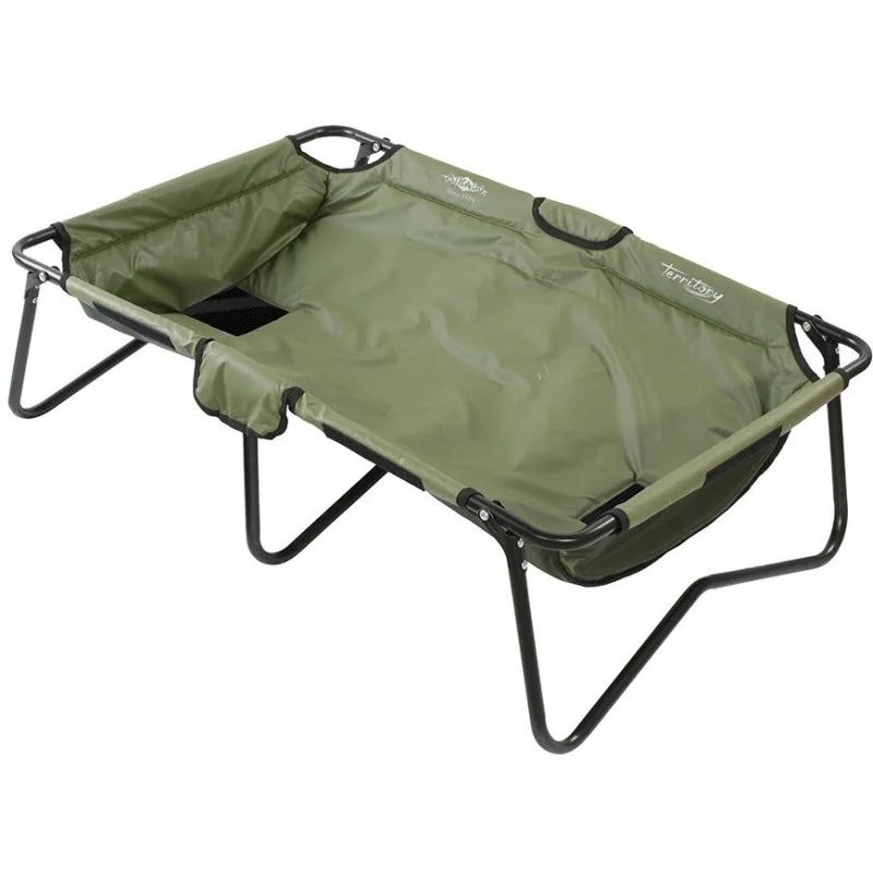 Profesjonalna mata karpiowa typu kołyska, która dzięki swojej nietypowej konstrukcji jest o wiele bezpieczniejsza dla ryb, oraz bardzo wygodna w użytkowaniu. Ryba w żaden sposób nie jest w stanie dotknąć podłoża na którym stoi mata, dzięki czemu możemy być w spokojni o jej bezpieczeństwo. Specjalne zapięcie na rzepy pozwala na pozostawienie ryby w macie, bez obawy o to że się z niej wydostanie. Mata posiada odpływy, dzięki którym woda na bieżąco wycieka, co poprawia komfort użytkowania. Wysoka jakość wykonania i miękkie ścianki wykonane z szybko schnącego materiału pozwalają na łatwe czyszczenie. W komplecie z pokrowcem ułatwiającym transport. Złożona mata ma wymiary: 65cm x 47cm x 10cm.