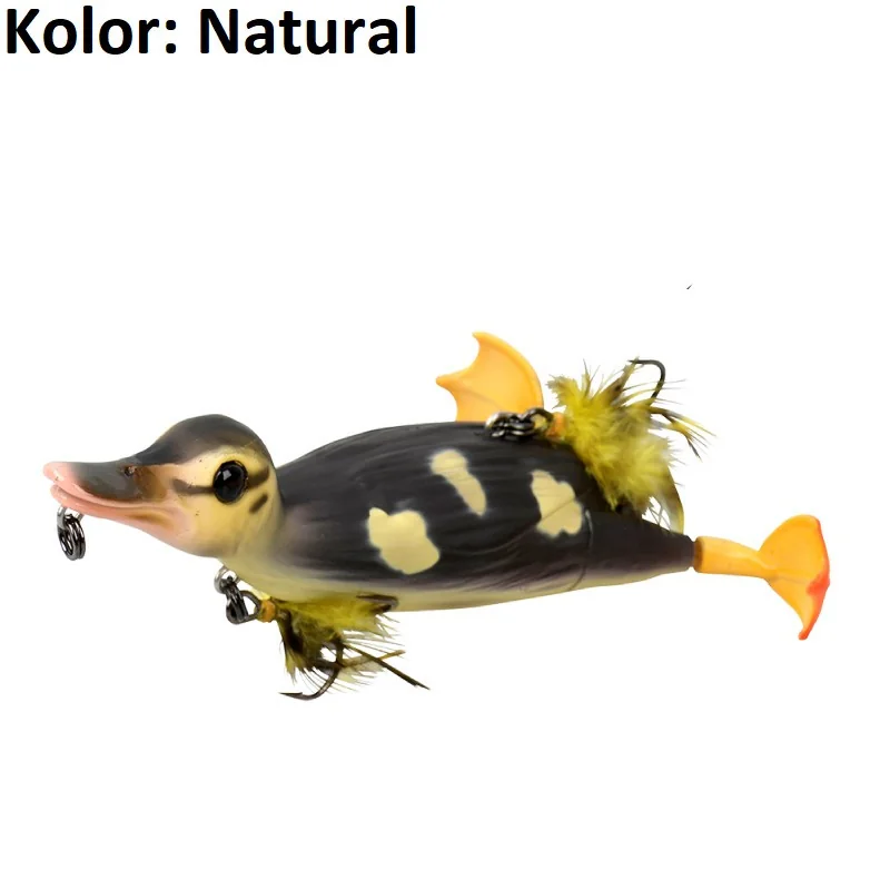 Super realistyczna imitacja kaczki pracującej powierzchniowo, naładowana innowacyjnymi rozwiązaniami! Poziom precyzji odwzorowania, osiągnięty dzięki skanowaniu 3D prawdziwych kaczątek zwiedzie najostrożniejszego drapieżnika, zapewniając agresywne ataki. Twardy korpus z tworzywa ABS i półelastyczne płetwy.