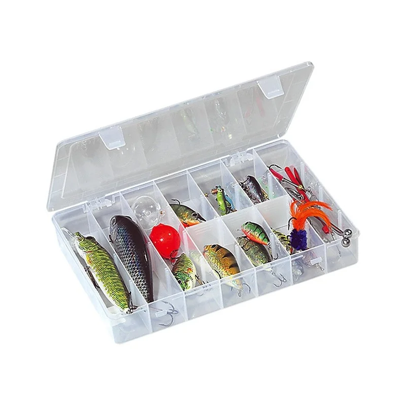 Przezroczyste pudełko na akcesoria wędkarskie firmy Jaxon. Wymiary pudełka 31x22x5 cm. Uwaga pudełko nie zawiera przynęt widocznych na zdjęciu podglądowym.