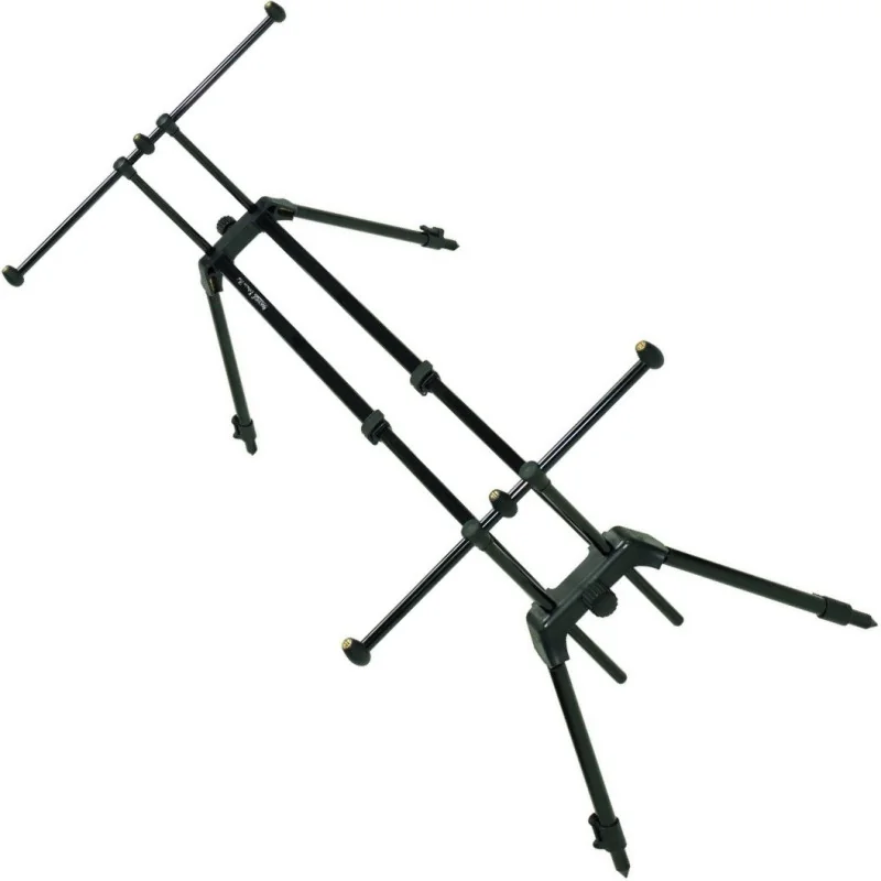 Stojak karpiowy, który może być używany zarówno jako rod pod i extension pod. Dzieje się to za sprawą dodatkowych, długich nóg, które pozwalają zwiększyć kąt nachylenia rod poda. Tak więc w komplecie otrzymujemy 3 pary nóg. Każda noga jest w pełni regulowana. Ten stojak pod wędki można ustawić w różnych pozycjach.. Całość została wykonana z czarnego aluminium. Rodpod dostarczany jest w dedykowanej torbie transportowej. Całość waży 2,8 kg.