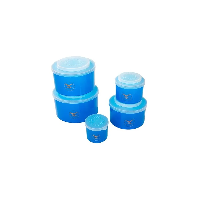 Pudełka z podziałką przeznaczone do przetrzymywania żywych przynęt wędkarskich.