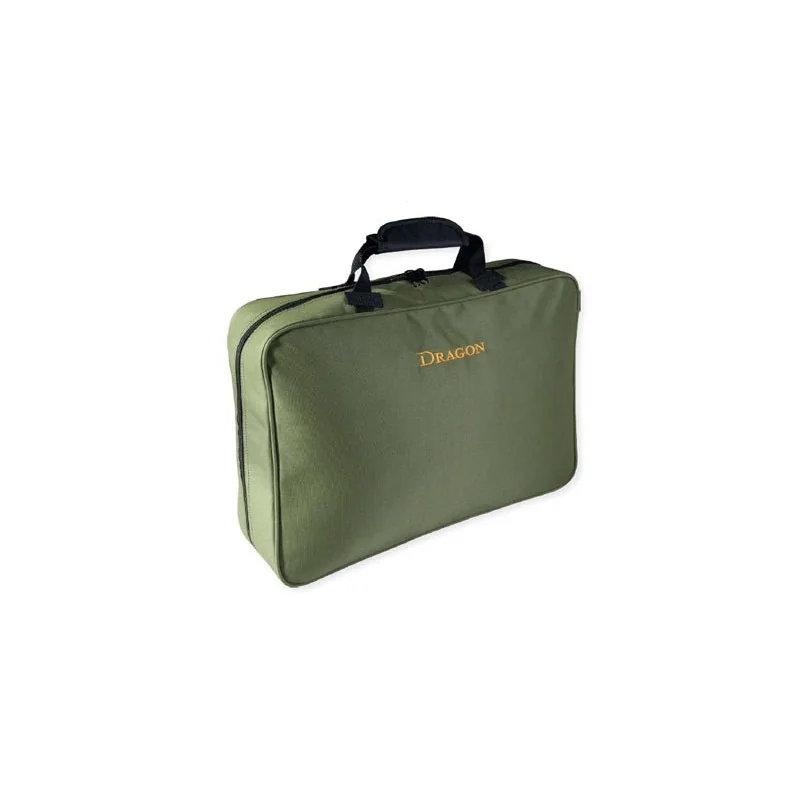 Poręczny portfel wykonany z mocnego materiału i wyposażony w zamocowane na uchwycie metalowym pojemne i trwałe foliowe torebki z wygodnym zapięciem strunowym. W każdej torebce znajdują się 4 komory, w które wsuwa się flashery. Portfel może służyć do przechowywania w domu bądź jako transporter wabików w drodze na łowisko, a następnie na łodzi jako baza większej ilości flasherów. Solidny zamek błyskawiczny otwiera górną pokrywę, co ułatwia swobodny wybór flashera.