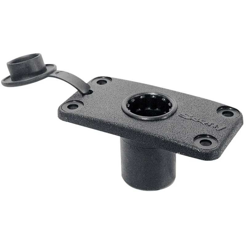 Przykręcana na stałe, uniwersalna podstawa do montażu uchwytów na wędki i innych akcesoriów Scotty. Miękka zatyczka w pełni odcina dostęp wody do otworu montażowego. Wymiary 10 x 5 x 5 cm.