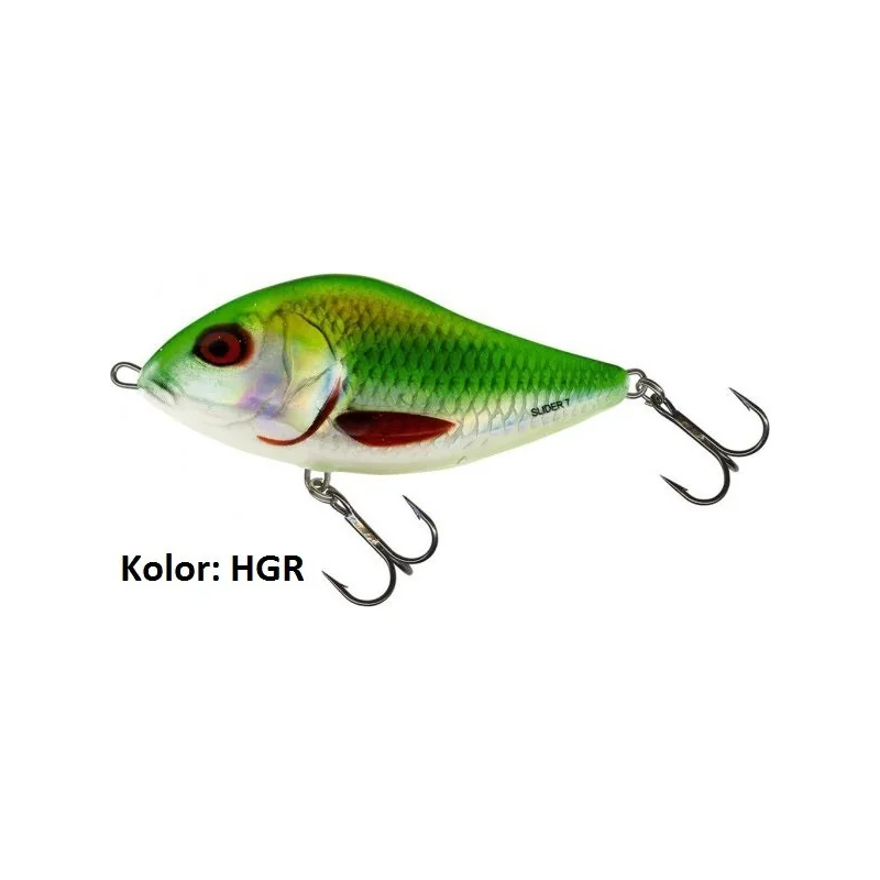 SLIDER jest również doskonałą przynętą do płytkiego trollingu. Po wypuszczeniu przynęty 10 – 30 m za rufę łodzi, trzymając wędzisko w dłoni, podszarpujemy nim co kilka sekund. Nowe SLIDERy 5 cm i 6 cm to najmniejsze dostępne na rynku jerkbaity, pozwalające łowić praktycznie wszystkie gatunki ryb.
