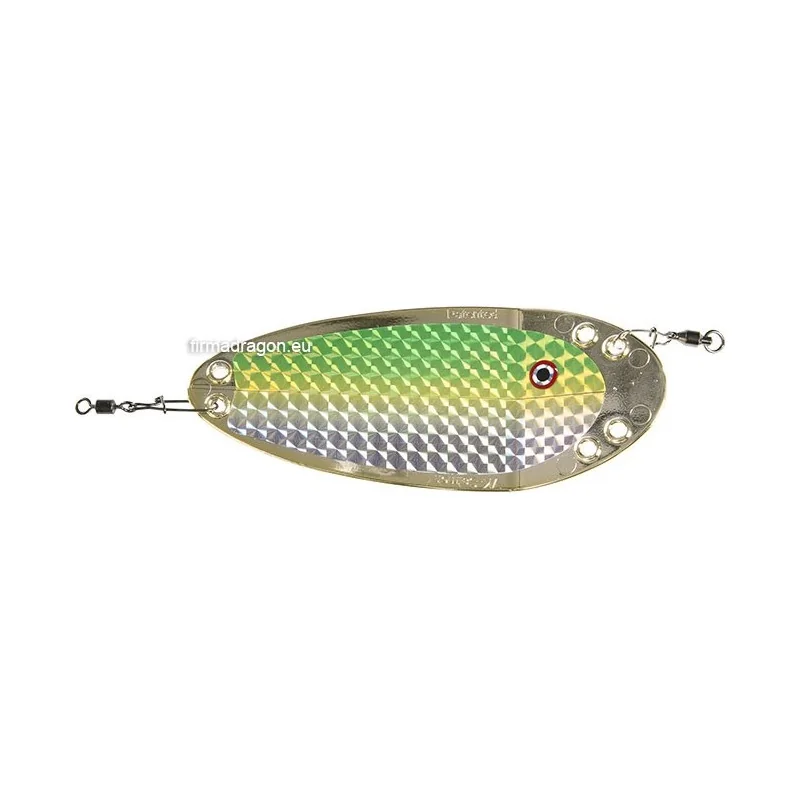 Zabójczy wabik na łososie, ale też trocie. Jego konstrukcja determinuje dość wolne ruchy, obraca się od 12 do 36 razy na minutę, zależnie od długości przyponu i prędkości trollingu. Akcję tego flashera można łatwo modyfikować, dopasowując ją do stosowanej przynęty.