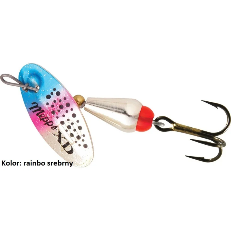 Bezstrzemiączkowe błystki (zwane w Polsce “garbatkami”) z przeciążonym korpusem w kształcie kropli służą do łowienia na większych głębokościach w akwenach z wodą stojącą, a na rzekach w głębokich rynnach o mocnym uciągu. Cztery wielkości – od #0 do #3 – oraz 8 zestawień kolorystycznych (Paletka * korpus) pozwalają na precyzyjne dobranie przynęty do rodzaju wody, aktualnych warunków pogodowych oraz ryby, na którą właśnie się poluje. “Zeróweczki” są znakomite na jazie oraz okonie, bywa, że można regularnie łowić na nie lipienie. Cała rozmiarówka może przynieść klenie, duże jazie, brzany, sandacze, szczupaki oraz okonie. Rzecz jasna, wszystkie XD™ mogą być zaatakowane przez pstrągi. Model Srebrny * srebrny oraz Czarny * czarny bywają skuteczne na bolenie. Producent zachęca do wzbogacenia kolekcji obrotówek w następujący sposób: XD szybko opadają i pozostają w głębokiej wodzie nawet przy najszybszych prądach. Najskuteczniejsza technika prowadzenia błystek XD polega na równomiernym wolnym ściąganiu bez żadnych doatkowych wariacji. Tajemnica jej skuteczności tkwi w nietypowej konstrukcji sprawiającej, że XD pojawia się w zasięgu wzroku ryby pod innym kątem, niż pozostałe błystki MEPPS. Nazywana jest błystką szybkiego startu bo ze względu na bezstrzemiączkową konstrukcję rozpoczyna pracę natychmiast po wpadnięciu do wody.