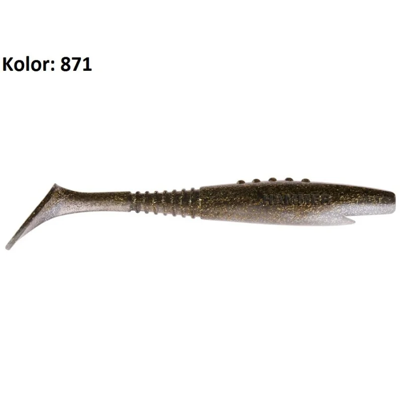 HAMMER to przynęta stworzona przede wszystkim do trollingu, a pomysł na nią przyszedł z Irlandii, od naszego kolegi Jacka Gornego. Hammer uzbrojony w systemik z dozbrojkami okazał się na testach wręcz zabójczo skuteczny i przywabiał szczupaki nawet w okresach bardzo słabych brań. Świetne recenzje zebrał też wiosną w Szwecji, gdzie, mimo swojej dużej masy, zaliczał piękne ryby na płytkich łowiskach szkierowych. Charakterystyczna dla Hammera jest bardzo szeroka praca ogona w poziomie jak i skręty samej płetwy wokół osi. Masa kolebiącego się na boki ogona wywołuje reakcję środkowej części przynęty – dzięki kilku nacięciom w tylniej części korpusu efektem jest migotanie bokami.