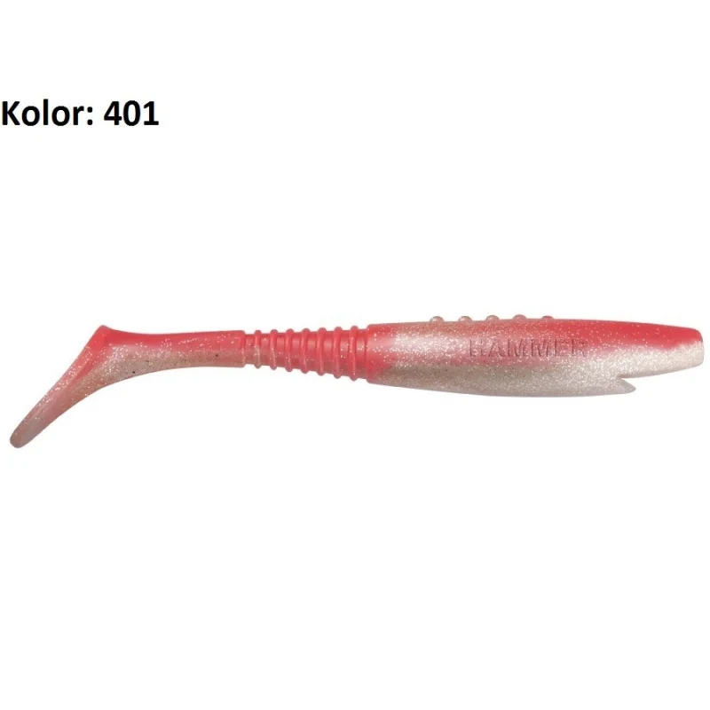 HAMMER to przynęta stworzona przede wszystkim do trollingu, a pomysł na nią przyszedł z Irlandii, od naszego kolegi Jacka Gornego. Hammer uzbrojony w systemik z dozbrojkami okazał się na testach wręcz zabójczo skuteczny i przywabiał szczupaki nawet w okresach bardzo słabych brań. Świetne recenzje zebrał też wiosną w Szwecji, gdzie, mimo swojej dużej masy, zaliczał piękne ryby na płytkich łowiskach szkierowych. Charakterystyczna dla Hammera jest bardzo szeroka praca ogona w poziomie jak i skręty samej płetwy wokół osi. Masa kolebiącego się na boki ogona wywołuje reakcję środkowej części przynęty – dzięki kilku nacięciom w tylniej części korpusu efektem jest migotanie bokami.