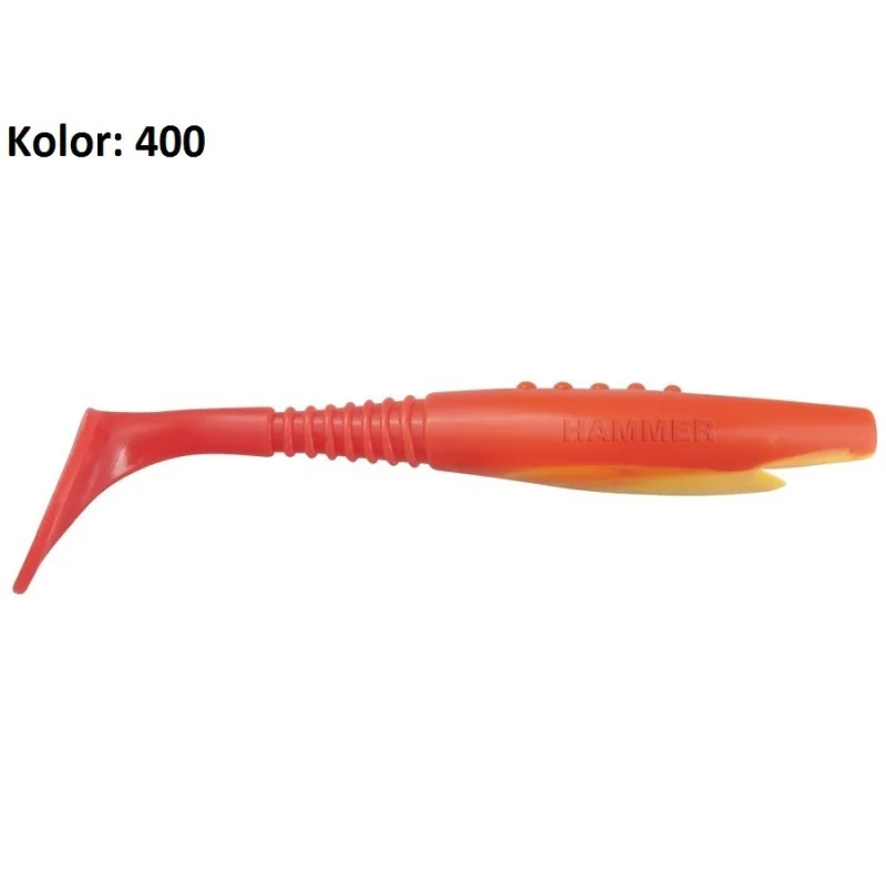 HAMMER to przynęta stworzona przede wszystkim do trollingu, a pomysł na nią przyszedł z Irlandii, od naszego kolegi Jacka Gornego. Hammer uzbrojony w systemik z dozbrojkami okazał się na testach wręcz zabójczo skuteczny i przywabiał szczupaki nawet w okresach bardzo słabych brań. Świetne recenzje zebrał też wiosną w Szwecji, gdzie, mimo swojej dużej masy, zaliczał piękne ryby na płytkich łowiskach szkierowych. Charakterystyczna dla Hammera jest bardzo szeroka praca ogona w poziomie jak i skręty samej płetwy wokół osi. Masa kolebiącego się na boki ogona wywołuje reakcję środkowej części przynęty – dzięki kilku nacięciom w tylniej części korpusu efektem jest migotanie bokami.