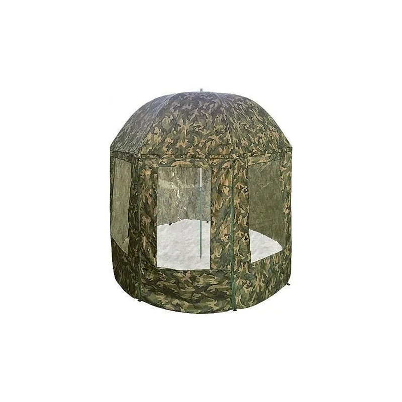 Duży parasol Jaxon AK-KZS046 z osłoną chroniącą przed deszczem i wiatrem. Stelaż czaszy parasola o długości 250 cm, co biorąc pod uwagę kształt czaszy, daje średnicę około 200-210 cm.