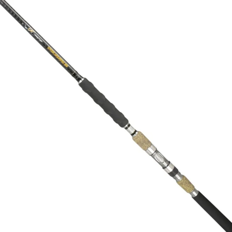 Dwa modele sumowych ‘uniwersałów’ do połowu dużych sumów metodami stacjonarnymi. Wykonane na bardzo wytrzymałych matach włówkna węglowego, posiadają dodatkowo wzmacniający oplot krzyżowy japońskiej firmy Toray. Najwyższej klasy przelotki SiC, super moccny uchwyt do kołowrotka sprawdza się w połowach zarówno na modele stało-szpulowe, jak i multiplikatory. Ergonomiczny uchwyt z długim foregripem i stosunkowo krótkim dolnikiem pozwala stworzyć idealną dźwignię w czasie holu, dzięki czemu blank może cały czas męczyć rybę. W wędkach zastosowaliśmy oryginalne rozwiązanie nakrętki od dolnika, która można odkręcić i zastąpić uchwytem do pasa krzyżakowego (w komplecie). Jednym słowem świetnie wykonane, uniwersalne kije na duże ryby!