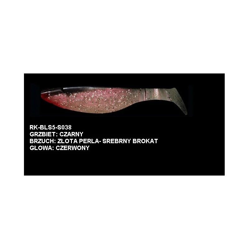 S274 Korpus pomarańczowy, perłowy niebieski brokat Ogon: czerwony