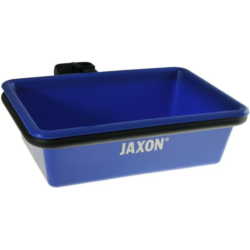 Kuweta Jaxon AK-KZE040A wraz z uchwytem do zanęty, wody, lub akcesoriów, mocowane na nodze kosza wędkarskiego. Kuweta wykonana jest z niebieskiego, mocnego i elastycznego plastiku, bardzo odpornego na pęknięcia. Kuwetę podtrzymuje metalowy, prostokątny uchwyt, który mocuje się na nóżce kosza. Rama zrobiona jest z metalowej, solidnej rury i stanowi na prawdę solidną podpórkę miski.