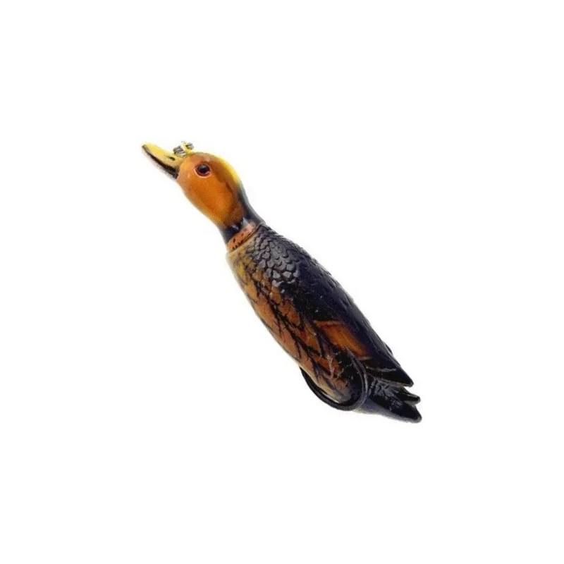 Realistyczna przynęta powierzchniowa imitująca kaczątko. Umiejscowienie podwójnego haka ma działanie antyzaczepowe, umożliwiając wędkarzowi swobodne prowadzenie przynęty pośród wodnej roślinności, a wykonanie korpusu z elastycznego tworzywa nie pozwoli atakującej rybie uniknąć ostrych grotów. Zastosowanie grzechotki oraz przegubowe połączenie głowy kaczki z korpusem powoduje osiągnięcie efektu naturalnego ruchu, prowokując agresywne drapieżniki do ataku nawet z dużej odległości. Skuteczność uzyskuje się poprzez zmienne tempo prowadzenia i energiczne podciągnięcia – skoki z krótkimi przerwami. Przynęta sprawdzi się szczególnie na zarośniętych łowiskach, gdzie pod osłoną podwodnych roślin czają się głodne, szczupaki i sumy.