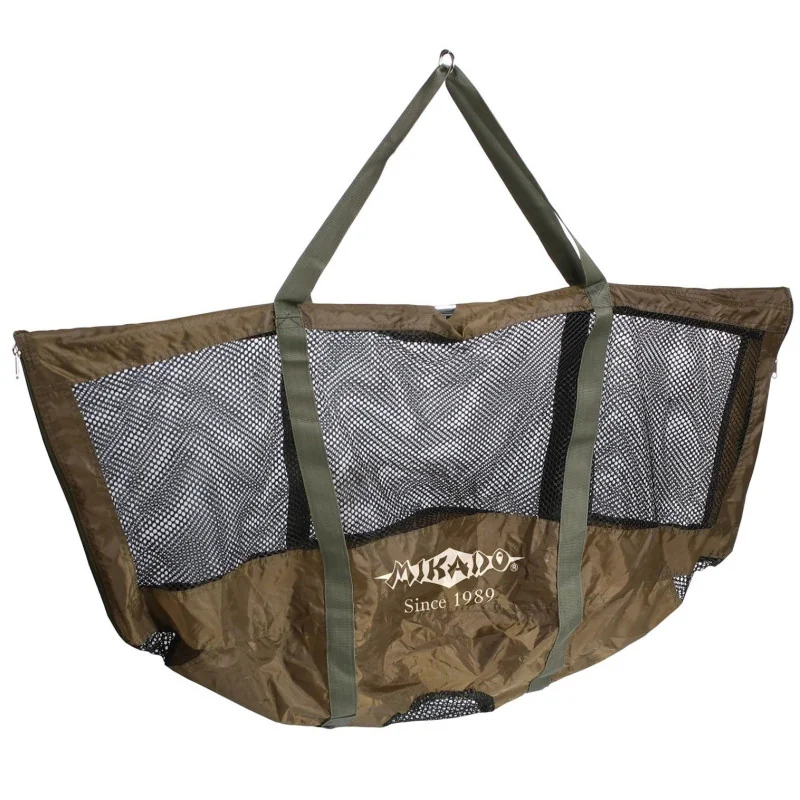 Worek do ważenia ryb Mikado. Sling wyposażony jest w siatkę w dolnej części przez co woda odpływa, a wynik pomiaru wagi nie jest sfałszowany. Sam materiał, z którego worek został wykonany jest przyjazny dla ryb i nie powoduje obtarć. Dodatkowym atutem produktu jest składana na pół, sztywna rama, co sprawia, że worek jest kompaktowy w transporcie.