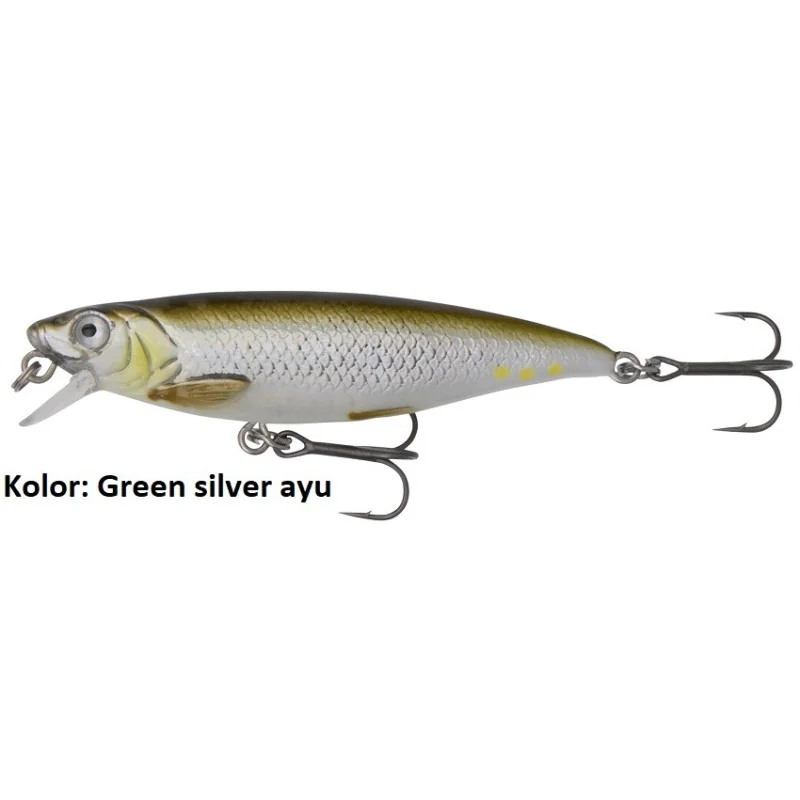 Przynęta opracowana na podstawie skanowania 3D młodego śledzia. Doskonały mini jerk i mały wabik do twitchingu – doskonałe lusterkowanie z poziomym wyważeniem, neutralna pływalność przy zatrzymaniu. System dalekiego rzutu.