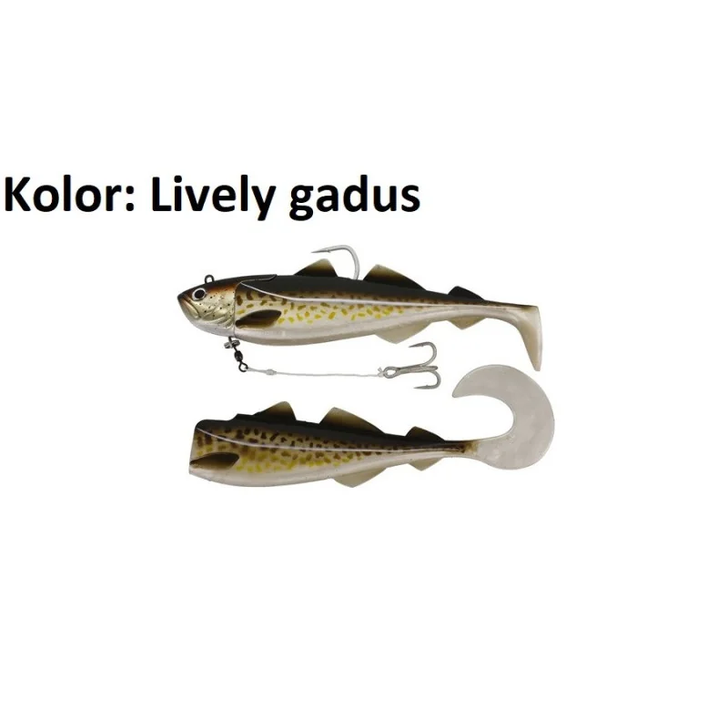 Guma została wyposażona w mega silną dozbrojkę oraz dwa różne korpusy - z ogonem typu twister (skuteczny do bardzo wolnego prowadzenia) oraz drugi z kopytem.