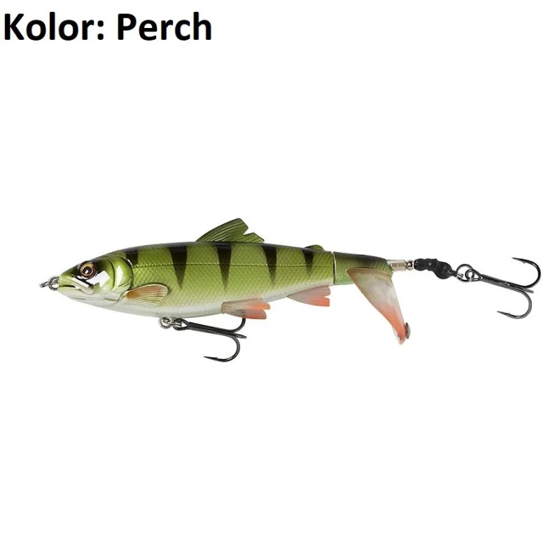 Oparty na skanowaniu 3D prawdziwych młodych pstrągów, realistyczny kształt i wysoki poziom detali. Obracający się ogon rozbija wodę generując głośne chlupotanie, pozostawia bąble i wyraźny ślad za przynętą. Mały nit w ogonie wzmacnia dźwięk i rozprysk wody nęcąc potężne drapieżniki do ataku!