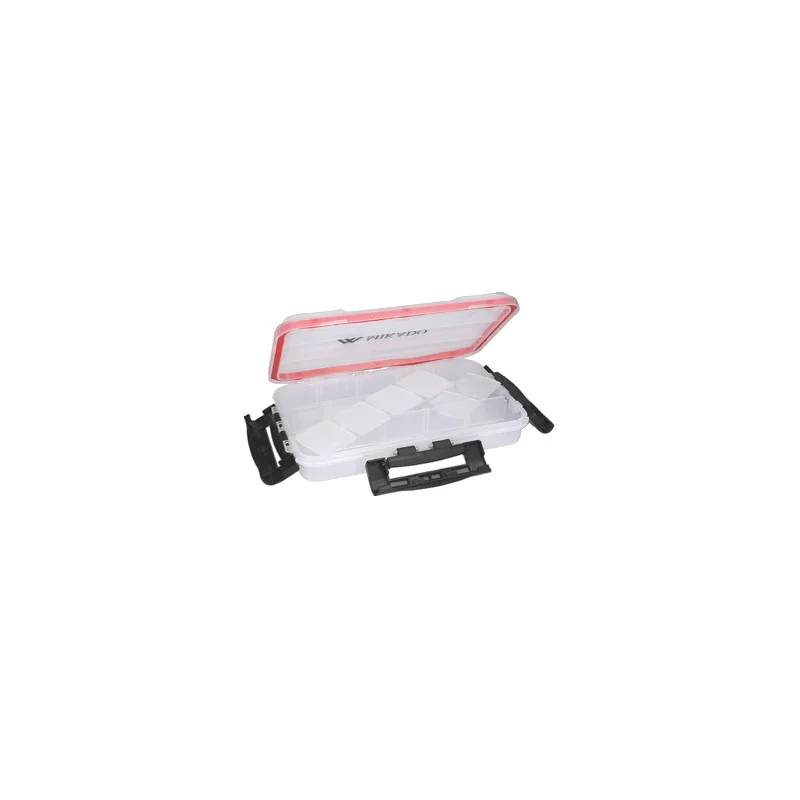 Pudełko z uszczelką na akcesoria i przynęty Mikado o wymiarach 27,5 x 18,5 x 5 cm.