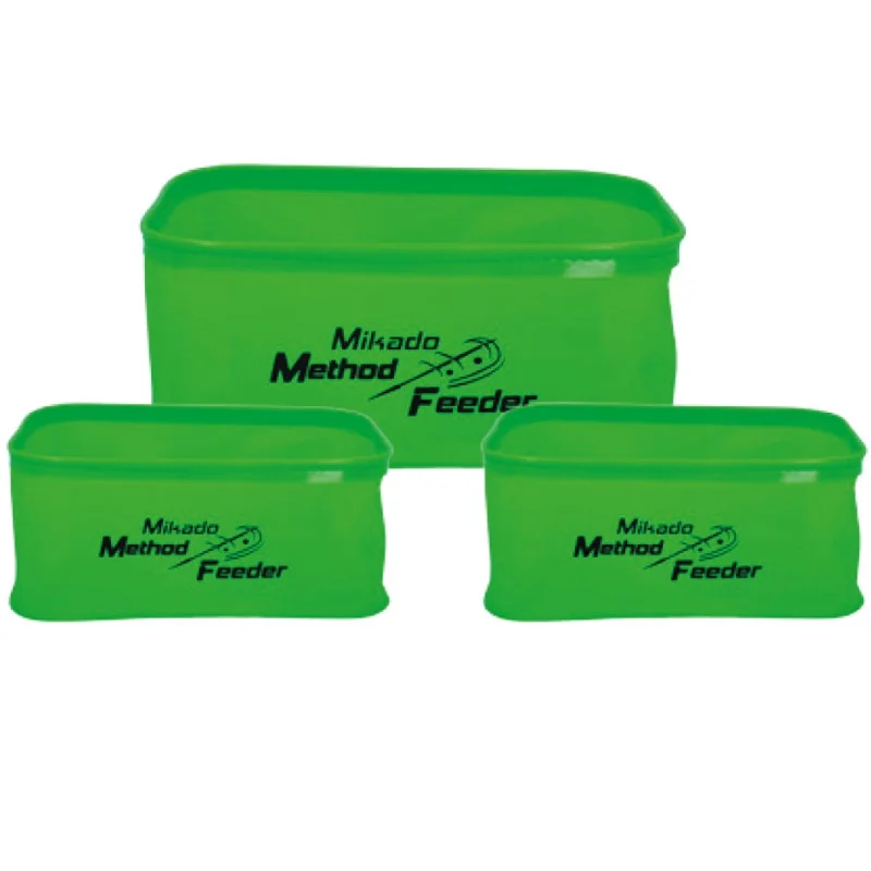 Niezwykle szeroka gama uniwersalnych pojemników Method Feeder. Dzięki zastosowaniu materiału EVA, pojemniki cechuje niezwykła wodoszczelność, a gama oferowanych rozwiązań, powoduję wręcz ich uniwersalne zastosowanie. Ich dodatkowym atutem jest lekkość i wyjątkowa łatwość utrzymania w czystości. Każdy wędkarz znajdzie dla nich zupełnie inne zastosowanie.