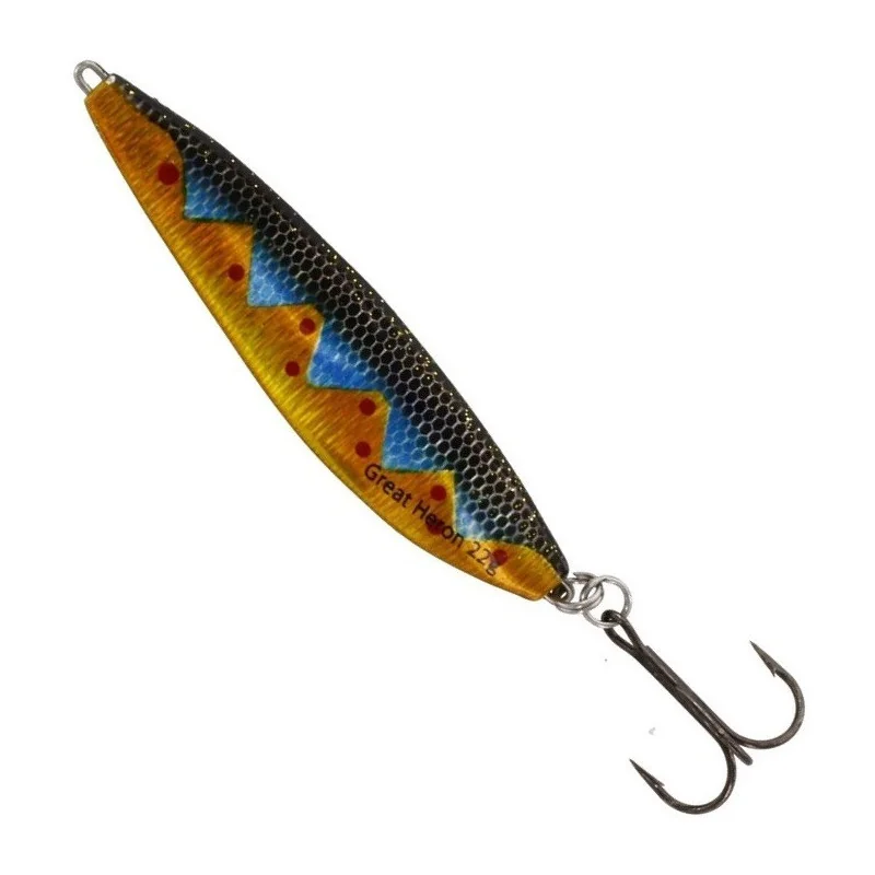 "Great Heron jest przynęta zaprojektowaną zgodnie z fińską tradycją tworzenia przynęt. Został on stworzony i przetestowany we współpracy z doświadczonymi wędkarzami z Finlandii i Szwecji. Od samego początku okazał się bardzo łowną przynętą - nie tylko troci i łososi, ale również gatunków takich jak bolenie, okonie czy szczupaki. Great Heron może być prowadzony szybko lub wolno. Niezależnie od szybkości ma bardzo żywą pracę, która kusi do brania. Nic dziwnego, ze przynęta ta stałą się jedną z najbardziej popularnych przynęt w Skandynawii!