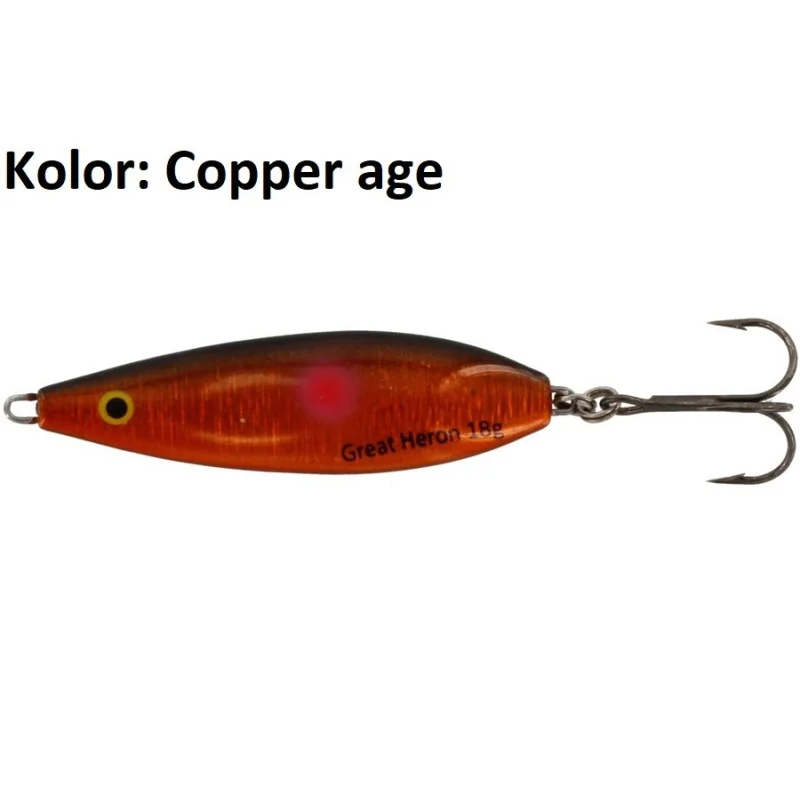 "Great Heron jest przynęta zaprojektowaną zgodnie z fińską tradycją tworzenia przynęt. Został on stworzony i przetestowany we współpracy z doświadczonymi wędkarzami z Finlandii i Szwecji. Od samego początku okazał się bardzo łowną przynętą - nie tylko troci i łososi, ale również gatunków takich jak bolenie, okonie czy szczupaki. Great Heron może być prowadzony szybko lub wolno. Niezależnie od szybkości ma bardzo żywą pracę, która kusi do brania. Nic dziwnego, ze przynęta ta stałą się jedną z najbardziej popularnych przynęt w Skandynawii!