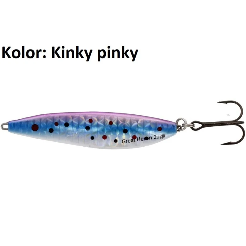 "Great Heron jest przynęta zaprojektowaną zgodnie z fińską tradycją tworzenia przynęt. Został on stworzony i przetestowany we współpracy z doświadczonymi wędkarzami z Finlandii i Szwecji. Od samego początku okazał się bardzo łowną przynętą - nie tylko troci i łososi, ale również gatunków takich jak bolenie, okonie czy szczupaki. Great Heron może być prowadzony szybko lub wolno. Niezależnie od szybkości ma bardzo żywą pracę, która kusi do brania. Nic dziwnego, ze przynęta ta stałą się jedną z najbardziej popularnych przynęt w Skandynawii!