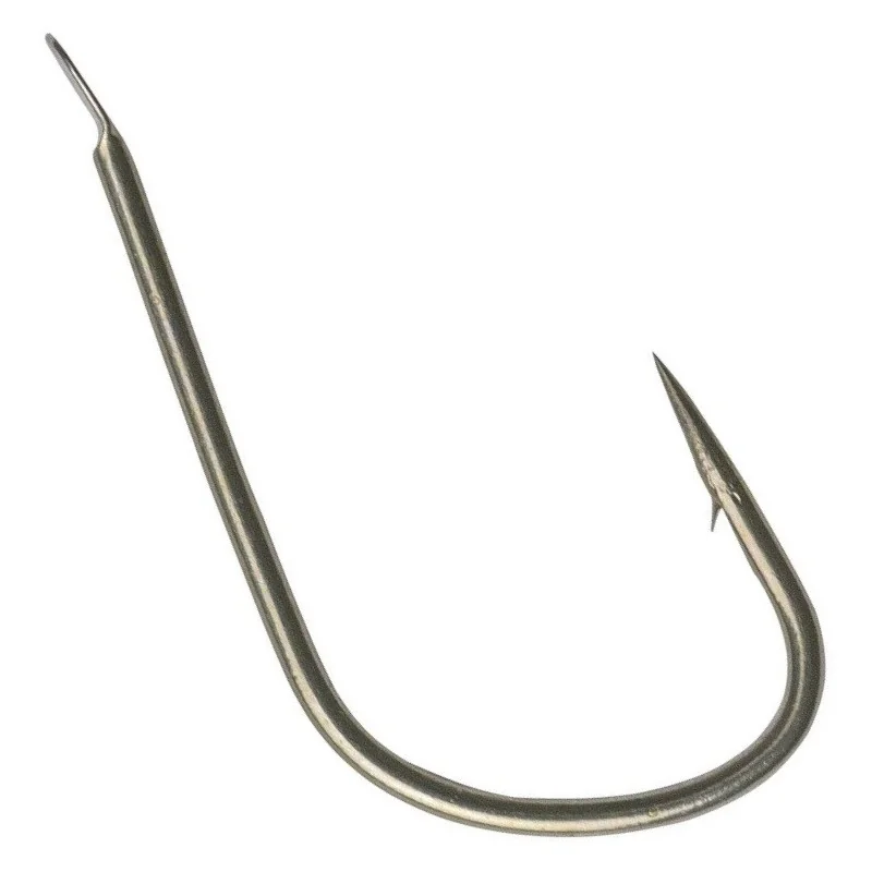 Haczyk pokryty brązem, wykonany ze stali o wysokiej zawartości węgla, prosty trzonek z średniej grubości drutu zakończony łopatką, szeroki łuk kolankowy, chemicznie ostrzony grot z mikrozadziorem.
