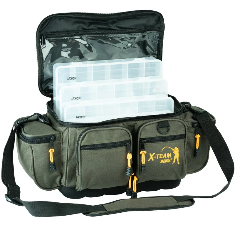 Torba wędkarska Jaxon UJ-XTX09 w komplecie z 4 pudełkami.
