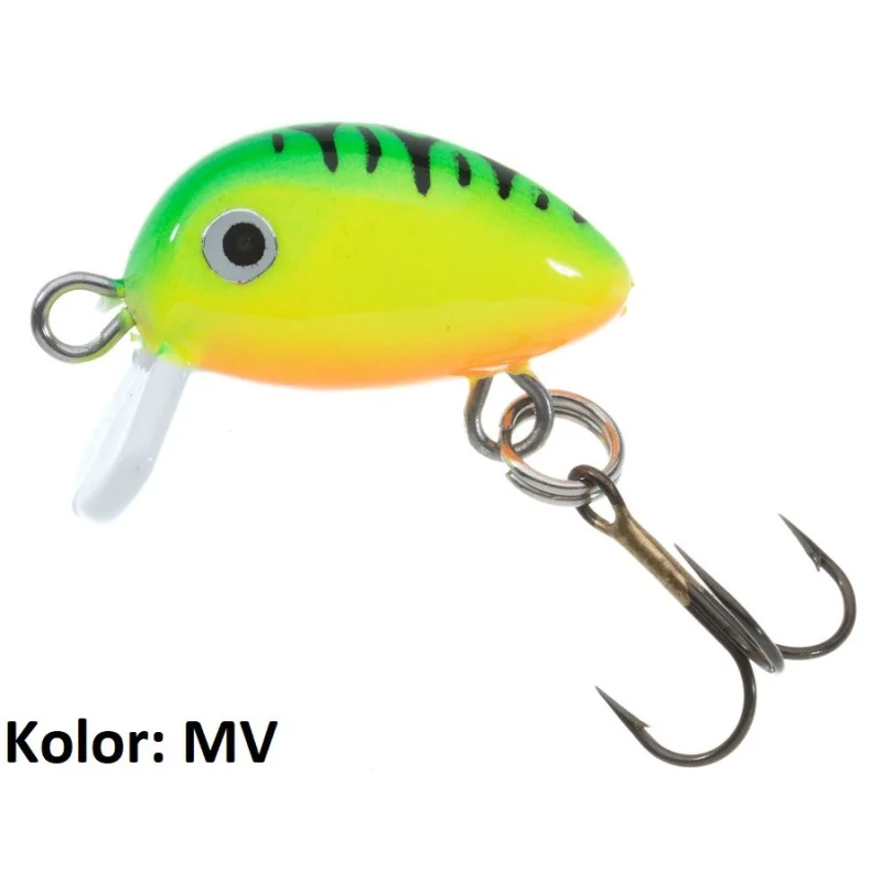 Najmniejszy wobler w naszej ofercie, mierzący zaledwie 2 cm. Polecamy na jaziowo-kleniowe wyprawy. Ostra, wyraźnie zarysowana akcja tuż pod powierzchnią wody.