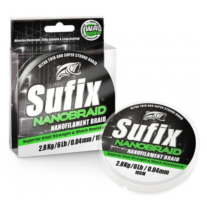 Sufix Nanobraid® została stworzona w technologii Wide Angle. Dzięki splotowi włókien Dyneema® zrobionym dwa razy gęściej niż w najlepszych, klasycznych plecionkach otrzymano linkę o bardzo dużej wytrzymałości i gładkiej powierzchni. Idealna średnica na całej długości i dużo większa odporność na ścieranie zwiększa możliwości zastosowań w porównaniu do normalnych plecionek.