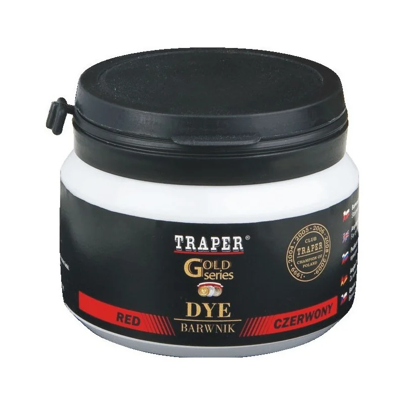 Barwnik wędkarski Dye Traper. Opakowanie wystarcza na przygotowanie 10 do 20 kg suchej zanęty. Stosować do barwienia zanęt i glin.
