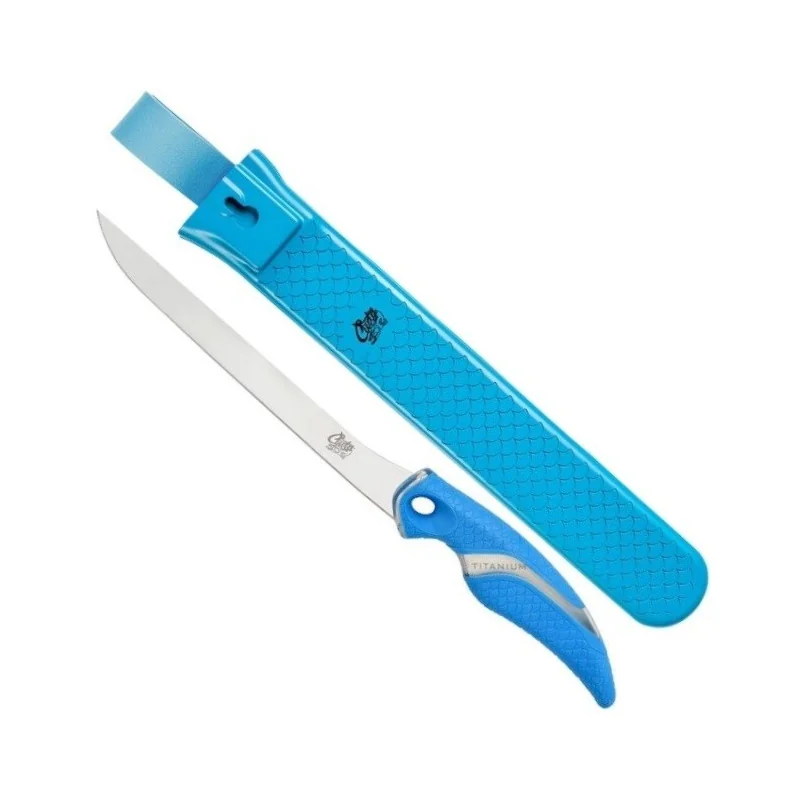 Precyzyjny nóż do filetowania o pewnym uchwycie. W zestawie z pochwą. Stal nierdzewna.