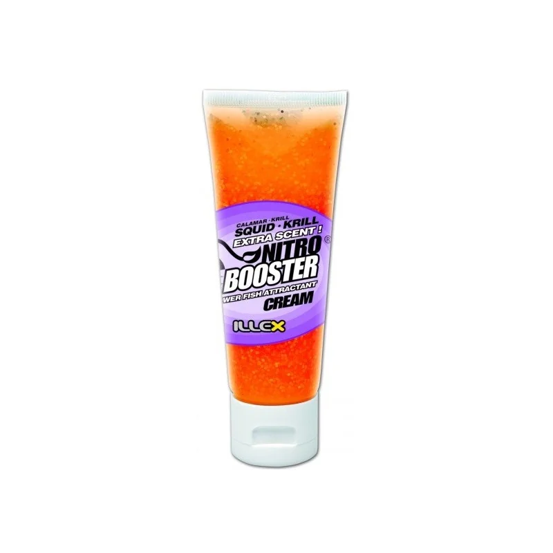 Nitro Booster Cream to pasta w żelu uatrakcyjniająca naszą przynętę. Posiada mocno skoncentrowane atraktory oraz brokat silnie oddziaływający na wzrok drapieżnika. Pozostawia smugę zapachu, która utrzymuje się w wodzie przez długi czas.