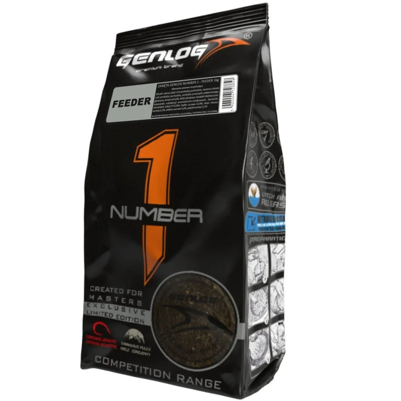 Zanęta Genlog Number 1 jest to najwyższa klasa i kumulacja doświadczeń, oraz niepowtarzalnych składników zanętowych w innowacyjnym opakowaniu. Zanęta została dopracowana w najdrobniejszych szczegółach. Wyjątkowość tego produktu to nowatorski skład mieszanki, który łączy naturalne pokarmy wodne, suszone larwy ochotki, oraz kiełża zdrojowego z najwyższej klasy produktami spożywczymi. Mieszanka przeznaczona do łowienia różnymi metodami wędkarskimi. Number 1 dedykowana jest pod zawody wędkarskie i trudne, przełowione wody.