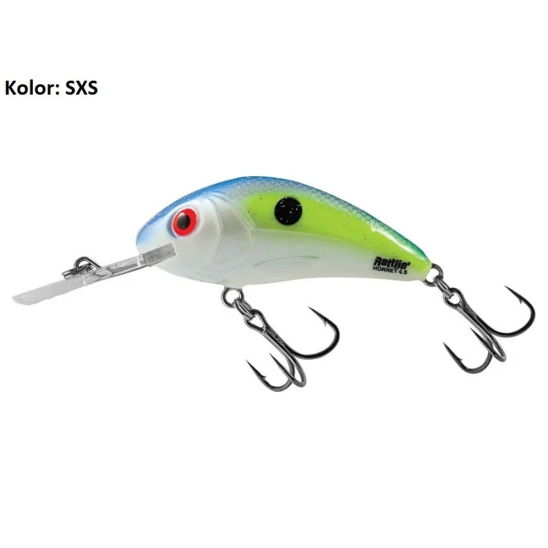 Hornet już od dawna uznawany jest za jedną z najlepszych sztucznych przynęt w historii. Teraz firma Salmo, we współpracy z grupą zawodowych wędkarzy amerykańskich, wprowadza zupełnie nową przynętę do tej rodziny. Rattlin’ Hornet 4,5 cm nadchodzi! Możecie od niego oczekiwać tej samej pracy, szarpiącej szczytówką wędziska i tej samej, niesamowitej skuteczności co od Horneta. Stosowany w trollingu czy w spinningu, Rattlin’ Hornet zmienia zakres tego, czego mogą oczekiwać wędkarze od tak małej przynęty. Przede wszystkim obala dominujące od lat przekonanie, że wielkie ryby łowi się tylko na duże przynęty. Trwające bardzo długo testy tej przynęty udowodniły, że jest ona skutecznym narzędziem połowu wielkich szczupaków, sandaczy czy rekordowych walleye’ów i bassów. Rattlin’ Hornet wyposażony jest w niezniszczalny poliwęglanowy ster, owalne, bardzo mocne kółka łącznikowe, kotwiczki Mustad Kevin VanDam Elite Triple Grip®, grzechotkę „glass bead” i unikalny, jedyny w swoim rodzaju system dalekiego rzutu opracowany przez Salmo (SICS – Salmo Infinity Cast System). Ta ostatnia cecha przynosi przełom w osiąganych odległościach rzutów: sześciogramowy Rattlin’ Hornet osiąga wyniki lepsze aż o 50% od nieco lżejszego Horneta 4 cm i o 20% lepsze od cięższego Horneta 5 cm!