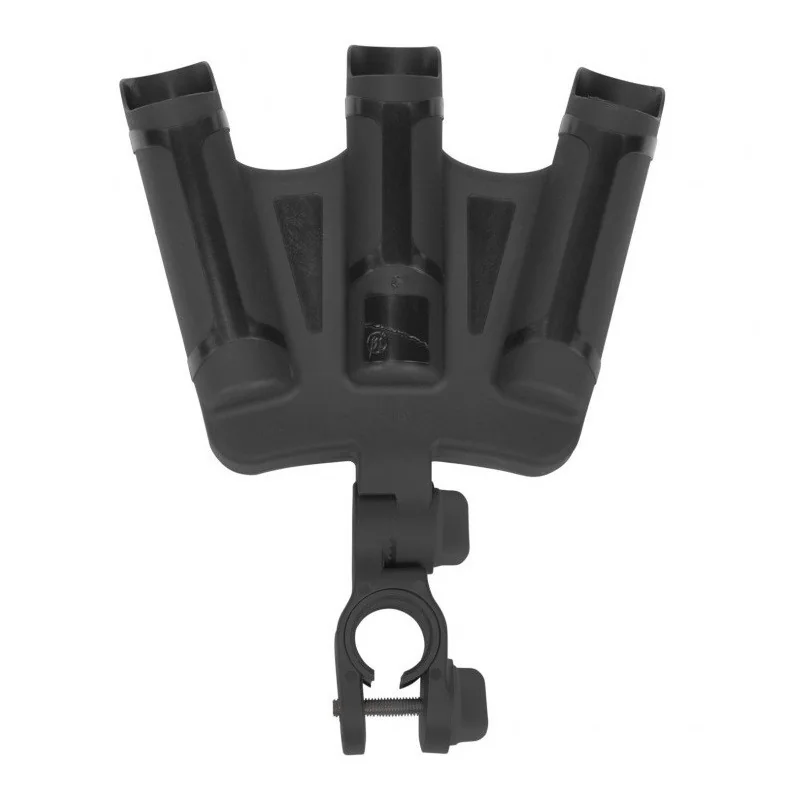 Praktyczny uchwyt na trzy wędki z możliwością regulacji kąta nachylenia maksymalnie do 90 stopni. W skład zestawu wchodzi uchwyt oraz trzy nakładki: 30mm Okrągła, 25mm Okrągła, 23mm OnBox. Bez używania wkładek kompatybilne z nogami o średnicy 36mm.